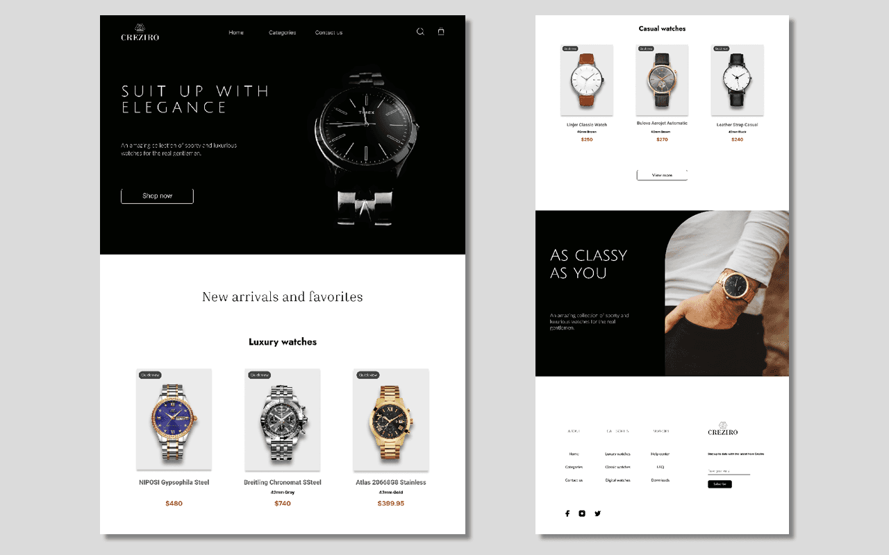 This is a landing page that I designed for an online watch store, the main key for this landing page is to provide an easy and professional user experience for sellers and buyers of any watches.